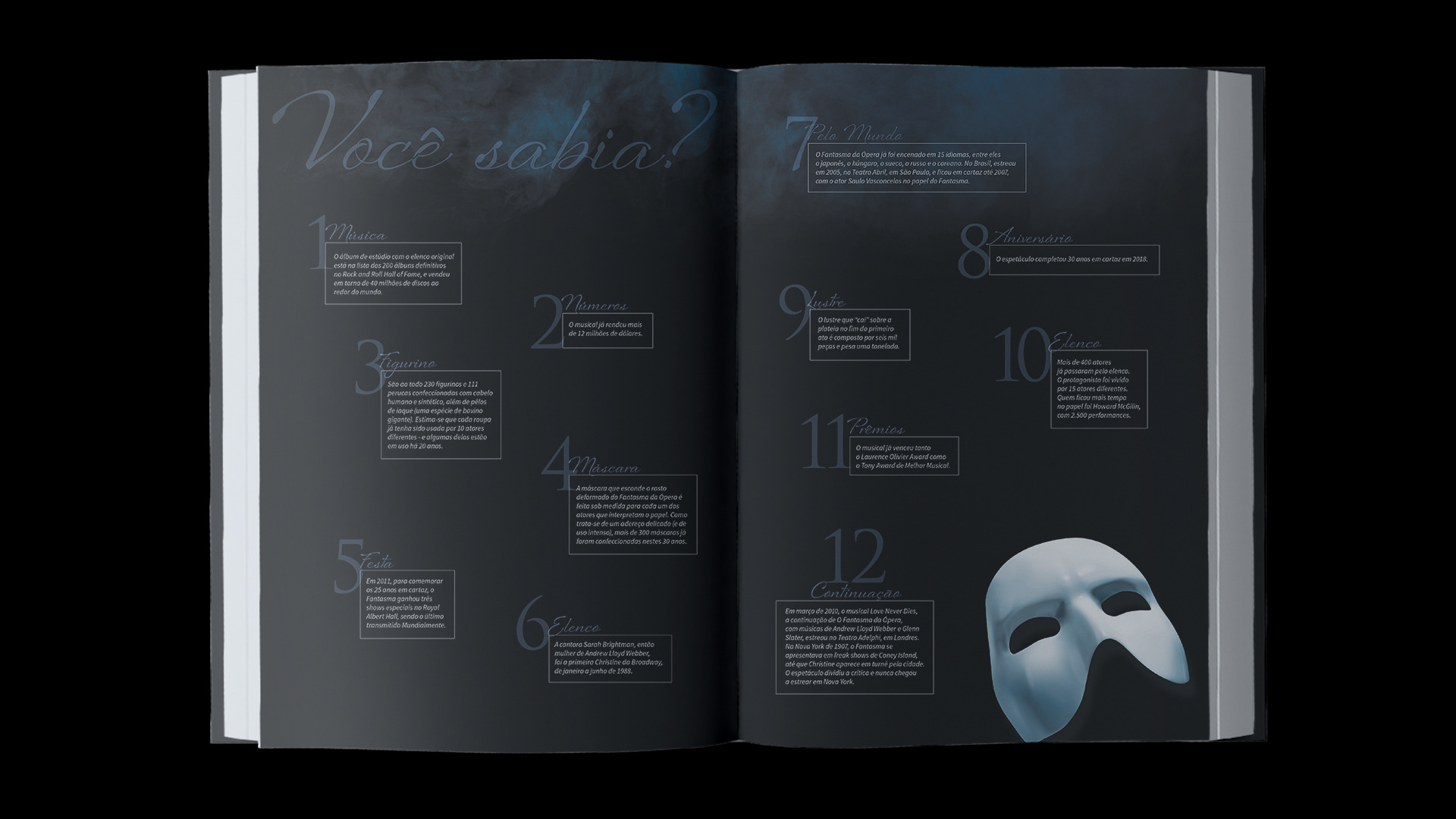 Projeto gráfico de livro de luxo, edição limitada para colecionadores. O material conta como nasceu a história, a construção do espetáculo, o desenvolvimento dos figurinos, todos os elencos e curiosidades dos bastidores.